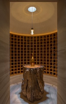 On the inside, the primary spatial organizational principal of the home is not dependent on the horizontal stratification of the four-floor levels. Instead, the internal spaces are grouped into public and private zones, with the public domain being located on the east side while the private rooms are situated on the west. Internal access between these zones is restricted to one hidden door at each main level, and each zone is served by a separate stair: an ‘air stair’ for the public areas and an ‘earth stair’ for the private side of the house.