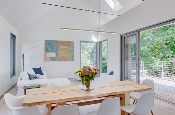 It had long been a dream of Principal Wayne Turett to get first-hand construction experience with cutting-edge energy efficiency. In January of 2015, he began sketches for what would become the Turett Collaborative Passive House — a home for his family in Greenport, New York. In addition to the amenities and aesthetic sensitivity present in all Turett designs, the home incorporates meticulously sealed openings; close attention to insulation detailing; triple-glazed windows; high efficiency ERV (energy recovering ventilation, so fresh air is introduced with minimal loss of temperature); a rainwater swale to minimize run-off, and a generally obsessive attention to execution. The goal was to prove that ultra-high energy performance is not only about sensitivity to the environment, but a means to achieve unparalleled comfort and amenity.