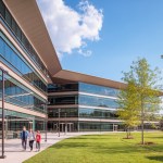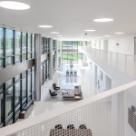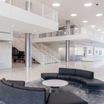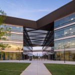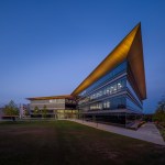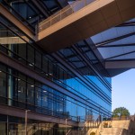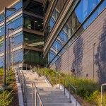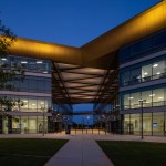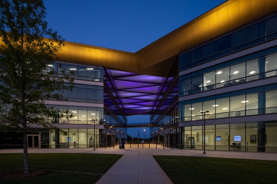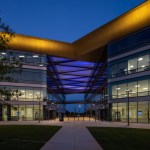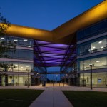 Due to the building’s emphasis on transparency in its design, concerns arose about the potential heat and solar gain resulting from incoming sunlight. WLS conducted various daylighting and sun studies to provide recommendations for suitable shading solutions that would establish an environment harmonizing comfort with visibility. Additionally, WLS was tasked with designing the building’s exterior and courtyard lighting, a challenge given the restriction of not attaching fixtures directly to the building itself. The installation above the courtyard is programmed for custom color patterns, allowing the Administration Buildings to exhibit university- or holiday-specific colors.