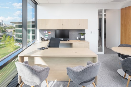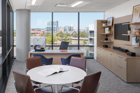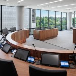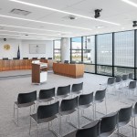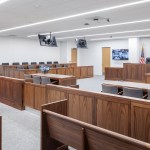 Throughout, the interiors embody a commitment to timeless elegance, durability, and a deep connection to community. The design creates a welcoming energy with a bright, clean aesthetic consisting of a neutral color palette and rich wood. Custom furniture solutions in the courtrooms, which are cohesive with the millwork, are investment pieces, built to last decades. With a focus on creating interior spaces that reflect the area’s growth and vibrant energy, the design team prioritized settings that took advantage of the abundant natural light, furthering the goal of fostering openness and connection. Quality finishes and furnishings underscore a forward-thinking, durable approach that considers the future needs of the County administration.
