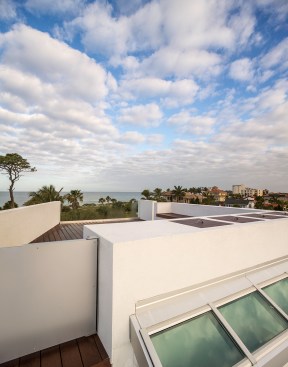 The living room looks through a gap on to the northwest, while the kitchen enjoys the southwest view corridor. These views correspond respectively to the summer and winter sunsets. The beach can be reached by means of a private beach access between neighboring properties. The house is divided into two wings. The main living quarters is on the second floor to take full advantage of the views. The ground floor accommodates the guest bedrooms, a small guest living, and the foyer.