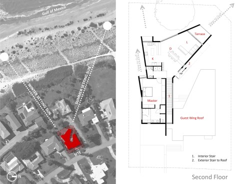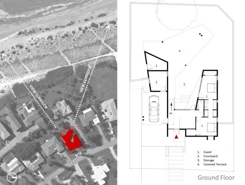 The small 50 foot wide site is one house removed from the Gulf of Mexico in Venice. A larger residence directly to the West obstructs the view to the Gulf. With careful edits, the design takes advantage of two view corridors through the setbacks of neighboring lots.