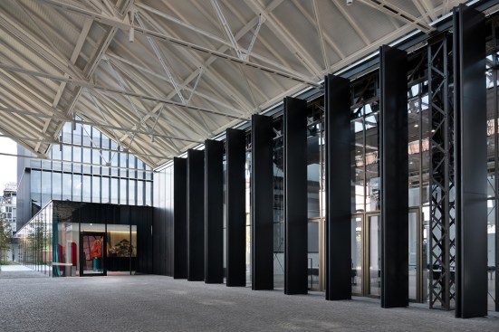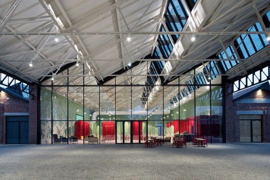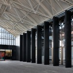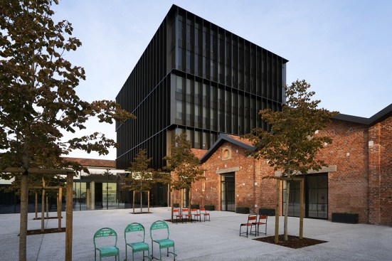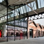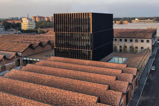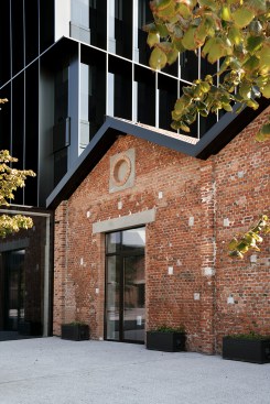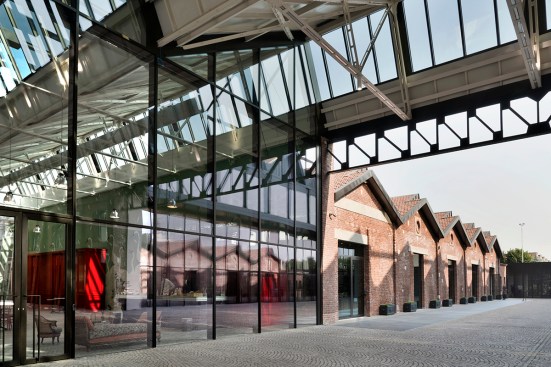 The redevelopment project of the old Caproni factory focuses on enhancing the stylistic features of the 1920s’ architecture and aims to transform this old plant into a large complex for Gucci, holding offices, showrooms and spaces for fashion shows and operations connected with graphics, as well as a canteen and restaurant. Recovery and enhancement of the characteristic shed buildings was the first element of the redevelopment project: set out in a regular pattern across the site and featuring modular structural bays, the abandoned industrial warehouses with exposed-brick facades generate, thanks to their spatial layout, a seamless interaction between the inside and outside. Particular attention was paid to the Hangar recovery, a volume of “exceptional” size, once intended for the final assembly of Caproni aircraft, that is now used to house the fashion shows from 2017. Moreover, the Hangar is enhanced by a large open and covered square connected with the main pedestrian axis facing to via Mecenate. This covered square acts as the core of the pedestrian system that includes a tree-lined square, common gardens, patios and green walls. Inside the regular layout of solid structures and empty spaces, a new six-storey tower closely interacts with the old construction: characterized by a glass façade covered with a regular pattern of sunscreens, the new building breaks down the site’s symmetry and tends to draw together all the different functions.