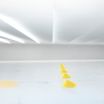 The museum’s design is founded on the contrast between the movement and materiality of the ground floors concrete and wooden surfaces and the abstract glazed, suspended exhibition space.