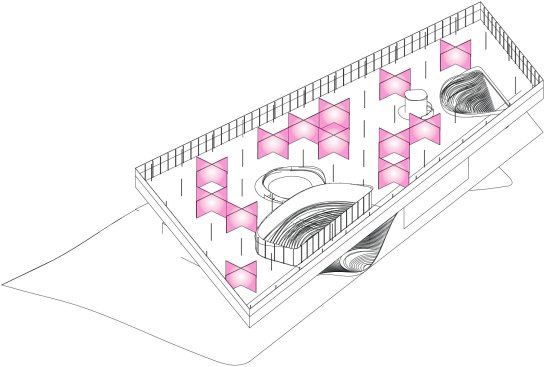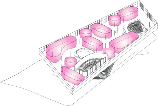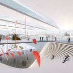 The fluid architecture creates a dynamic exterior and interior landscape connecting the city with the museum and the exhibition spaces in a seamless movement.