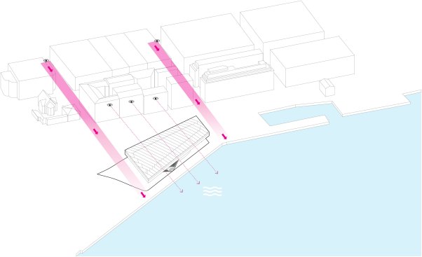 The museum merges into the sensitive waterfront: it keeps open the vision towards the water.