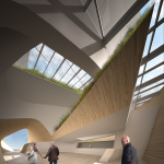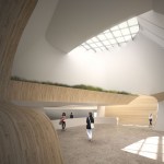 Internally the museum is efficiently organized around a central core where a majority of the program is located around the buildings main atrium. Here guests find Visitors Services and are oriented by vistas through adjacent programs and back to the port. The main atrium is accessed via multiple entrances that weave together city and museum to takes one on a journey through layers of landscape, shaping and shaped by light. The new park functionally houses a majority of the galleries that are accessed via a series of smaller atria. These atria erode landscape, blurring the interior and exterior spaces and programs and ones perception art. Our proposal articulates a new model for sustainable, integrated urban development