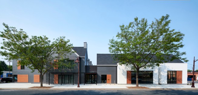 The architecture incorporates both trauma-informed and evidence-based design principles. Abundant daylight, connections to nature, safe materials, and flexible spaces promote well-being for clients and staff.