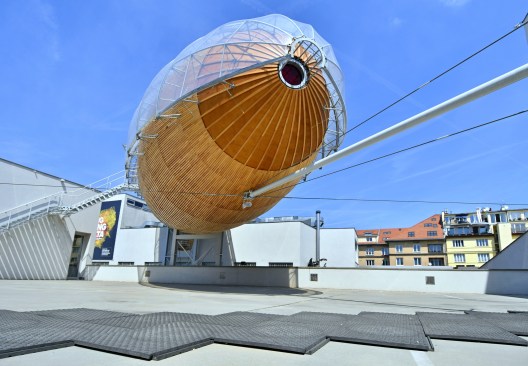 The construction of a giant wooden airship “suspended” above the DOX Centre is yet another testament to Leoš Válka’s personal conviction that is reflected in the DOX Centre’s overall philosophy: that even in today’s fast-paced, globalized world where nothing that cannot be calculated, evaluated, or predicted is worth risking for, “things can be done differently.”