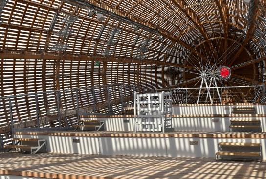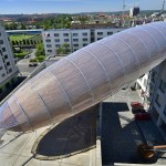 A unique monumental architectural intervention, inspired by the elegant shapes of early 20th century airships, is growing on the rooftop of one of the largest contemporary art spaces in the heart of Europe. The 42 meter-long steel and wood structure will become a new permanent space for literature at the DOX Centre for Contemporary Art in Prague, Czech Republic.