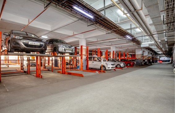 The new Guwahati City Centre occupies the most pivotal position in the city, like a massive retail bridge between the two busiest roads of Guwahati i.e. the Guwahati – Shillong aka G.S. Road and the Zoo Road. The mall is spanned over eight floors and a basement. It embraces some of the big brand retail showrooms, theaters and offices with a sweeping area of 40,000 sq m. With the mandatory norms of attaining 40 percent ground coverage and 2.25 F.A.R, the biggest challenge was the water table level of the site that was recorded to be 0.5 m below the site level. Since, the provision of parking was then restricted to the ground and the only basement, therefore mechanical parking has been employed to accommodate nearly 400 passenger car vehicles and 100 two wheelers altogether.