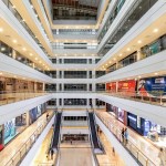 The site is skewed in its proportion, almost 45 m in width and 250 m in depth. The skewed- linear shape serendipitously accentuates the unparallel views of the spectacular settings and displays an incredible visual choreography. However, the inevitable linearity has been achieved in the building profile irrespective of the site shape. This has been accompanied by the mitigation of continuous punctured atrium flashes running right in the middle of the mall. Divorcing the spaces to be interpreted as long hollow corridors or a conventional arrangement of rectangular blocks, the position, shape and space acquired by the atriums are a respite for all the retail spaces that have the equal access to daylight and the large open space.