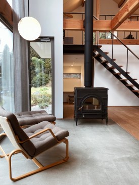 Interior volume reveals the simplicity of the house, scaled for intimate family gatherings. The aim is to create a shelter where family can experience the unique relation between the natural environment and the warmth of the interior. Cozy but ample, bright and airy.