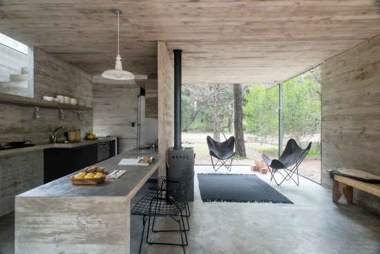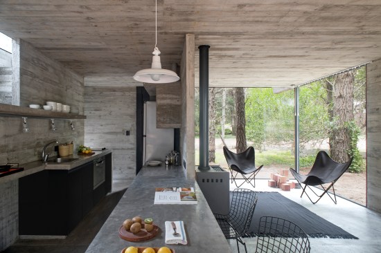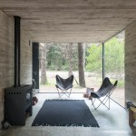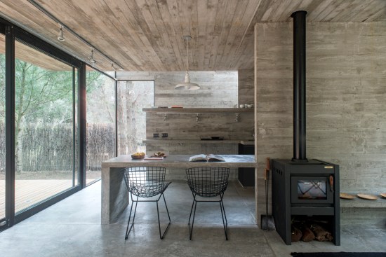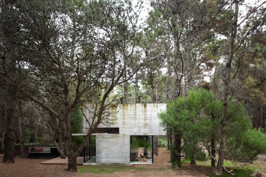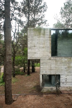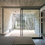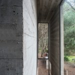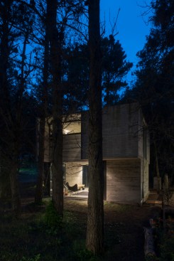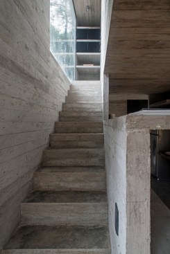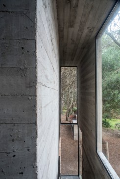 Pine planks were used to set the formwork so that the partitions as well as the slabs would preserve the texture of the wood veins in an attempt to establish a harmonious dialogue with the bark of the local trees.