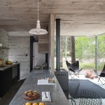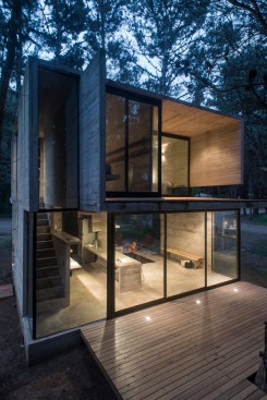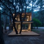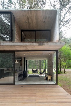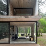 On account of the abundant shadows provided by the profusion of the woods, there was no need to reach for architectonic devices to reduce the sun’s incidence inside. As a matter of fact, apart from connecting the house interior and gaining visuals, the windows of the house also absorb the light that dribbles through the dense canopy of the trees.