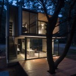 As the corridor and the serving facilities were set to the side next to the neighboring lot, the main windows were set on the house’s more private rear, allowing the dwelling to open towards the outside deck and calling for the conservation of the original trees.