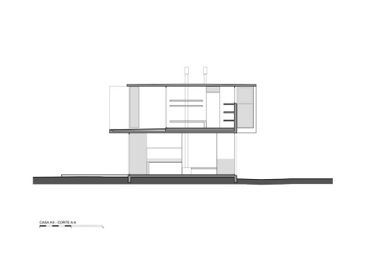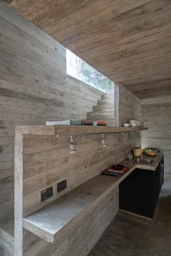 The house’s materiality was agreed on by the studio and the commissioners. H3 was completely built in exposed concrete, which served well to the maintenance moderation. Intending to keep the needs for equipment at a minimum, even furniture was conceived as a part of the concrete volume.