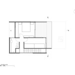 The house was constituted as a compact block. The ground floor houses the kitchen, the dining room and the living room, all in an integrated space from which the staircase emerges towards the first floor. Given the house’s scale, the use of crossed views and vanishing points aimed at unifying and fluidifying the space in the room. Instead of confining the house’s different uses into separated rooms, they have been connected with each other, aiming at producing the general feeling of spatial expansion. As requested on the brief, the bedrooms and the bathroom were located upstairs, but the main bedroom’s outdoor semi-covered space was designed to be shared with the secondary bedroom. Additionally, it would partially work as the roof for the downstairs deck.