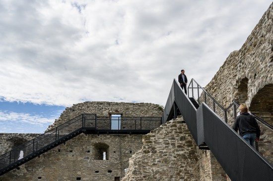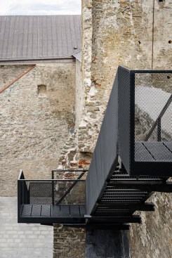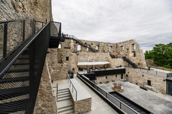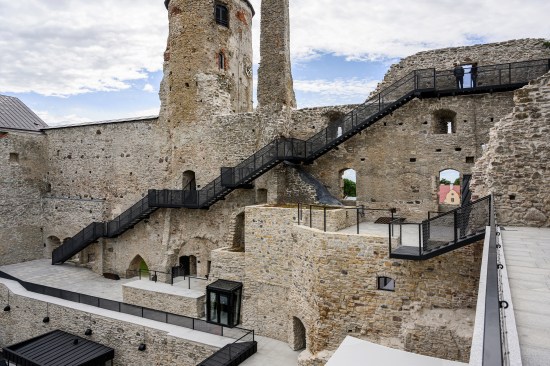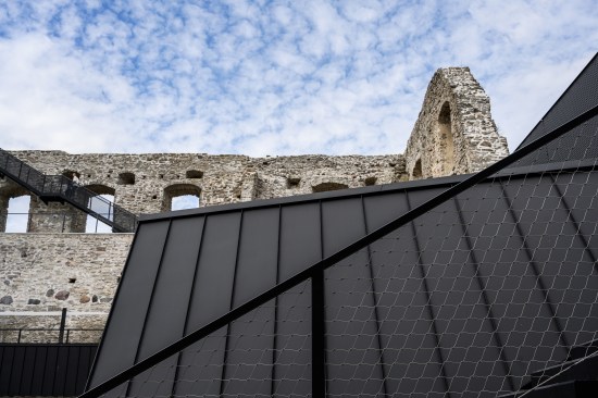 Our conservation and renovation design has resulted in a journey along the walls and within the castle, inviting the guests to take a look at the castle structure and the picturesque town of Haapsalu from an unusual vantage point high above, and to experience the medieval environment from another level. The gardens on the roof terraces, the path floating along the walls and the elegant pavilion bring in freshness and provide an exciting synergy between the new and the old. The exhibition rooms inside the ruins are dark and massive. The new modern additions respect the past and assist present-day people in conceptualising it.