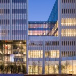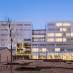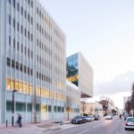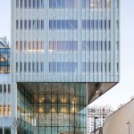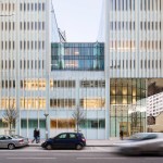 are fitted with a second “skin” in the form of a giant slatted blind, which filters the natural light. In this way, the facades are perceived as independent units, eschewing the mundane appearance of a traditional office building and creating a strong urban architectural image.
