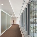 The core zone that concentrates the bulk of user flows forms the center of gravity of this fluid space, linking it directly with the cafeteria and restaurant, which look out on to the papyrus garden, a unique landscape in the Paris region and an open-air extension of the ground floor in the summer months. This garden, with its curtains of vegetation, not only forms a remarkable landscape but also creates a certain distance from the surrounding environment. While private, the garden is hinted at from the street, and accompanies the visitor from the esplanade through to the entrance hall. It creates a memorable image for outside visitors and the building’s occupants alike.