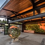 A spirit of openness pervades all aspects of life on the hacienda. Visitors are welcome to tour the research facilities and ask questions. The final stop on the tour, the mountainside café, presents guests with breathtaking views while they sip their favorite Starbucks blend. “We framed these vistas,” Daniels says. “Large, retractable LaCantina folding doors allow us to open the entire café to the farm’s beauty. The lines between inside and outside are blurred by the structure’s open expanse.”