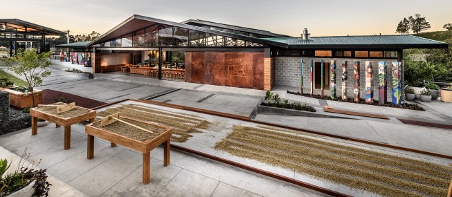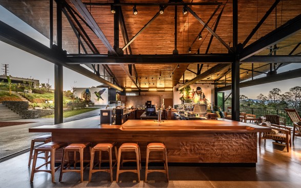 The farm opened about a year ago to the public and is located 45 minutes outside of San Jose, the capital of Costa Rica. The open mountainside view from the 46,000-square-foot visitors’ center is arguably one of the best the country has to offer, and the on-site scientific investigations in coffee agronomy are open source, meaning the findings are freely available to coffee farmers everywhere. Visitors to the farm can also explore exhibits detailing the journey from seedling to cup. And the architectural style is honest, with every girder, beam, and truss in full open display.