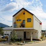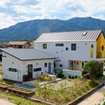 Since the second floor is protruding to the north and the south, compared to the first floor, big and small eaves are created at the back and front sides of the living room.