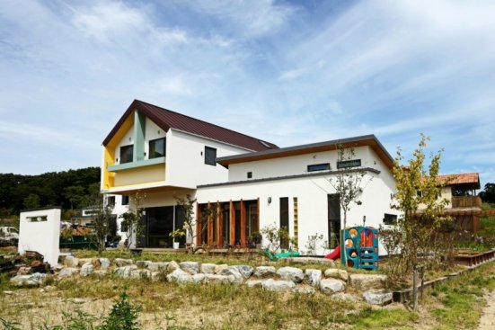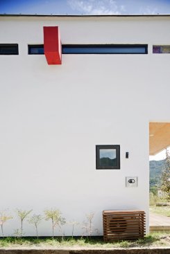 Also, in the yard at the south, four-colored chairs and walls were created to make a space to look at the house.