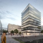 MVRDV and morePlatz were chosen winner of the international competition for two office buildings of in total 12.000 m² pioneering the transformation of Mainz’ former harbour Zollhafen. The ensemble consists of an elongated block of five storeys and an eleven-storey high-rise tower creating a landmark at the waterfront. “Hafenspitze” is being developed by CA Immo Deutschland. Construction start is envisioned for autumn 2015.