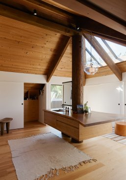 The Haiku House entailed SHED’S transformation of a 1991 Japanese Kit House located on a bluff overlooking San Francisco Bay. Haiku House is the centerpiece of a unique property consisting of four structures including a main house, guesthouse, beach house and garage dispersed among native and exotic plant gardens that extend from Paradise Dr. down to the Bay.