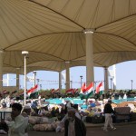 In response, SOM designed a linear terminal building and a separate, large support complex where travelers can comfortably prepare for their journey to Mecca. The complex contains facilities for sleep, food preparation, and various support services. The naturally ventilated building is topped by 210 semi-conical, Teflon-coated fiberglass roof units that are contained within a total of 10 modules. The modules are supported by 45-meter-high steel pylons. Because the fabric has a low heat transmission, it allows the sun to cast a warm light over the support area. At night, it becomes a great reflective surface, as uplights bounce light from the roof to the ground below.