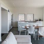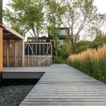 Glass walls, slatted pergolas, and diagonal bracing read as faceted layers in the open-plan house, which is clad in maintenance-free Richlite and cedar, like the surrounding homes. “It’s a raggedy Modernism, almost like an improvisation on a structure,” a judge said. “It’s rambling but pure in plan.” —Cheryl Weber, LEED AP