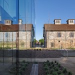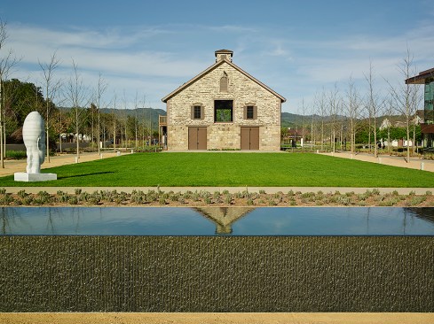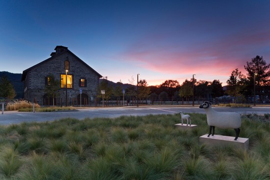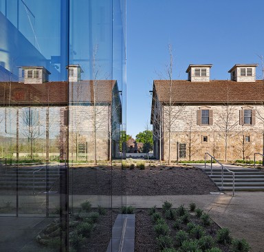 The new, state-of-the art winery is now completed across the courtyard from the re-imagined landmark. When the sun is just right, guests enjoying the Peterson-Bergfeld’s soaring second floor may glance out the window to a surprising, life-sized, reflection of the historic building’s striking stone exterior from the structural glass curtain that encases the new facility.