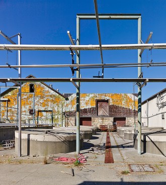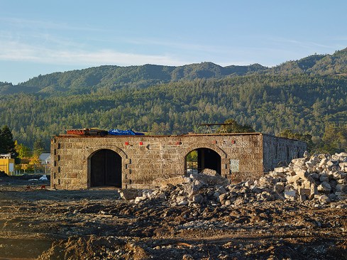 Shortly after, Phylloxera destroyed Peterson’s vineyards and by 1894 he was ready to go home. The property was sold to San Francisco building contractor, Robert Bergfeld, who restored the vineyards and chiseled away Petersons name above the winery entrance and replaced it with his own. Bergfeld produced wine there for 12 years. After a brief ownership by a third vintner, the operation was shuttered by Prohibition. After Repeal, it reopened as the Napa Valley Winery Cooperative, the precursor to today’s custom crush concept. Grape growers who bought into the Coop brought their grapes to the winery where they would be fermented, made into wine and sold to a brand with proceeds going back to the members. By the time our clients purchased the property in 2003, time and the elements had taken a toll and the entire winery building had been completely encapsulated in a derelict warehouse structure.