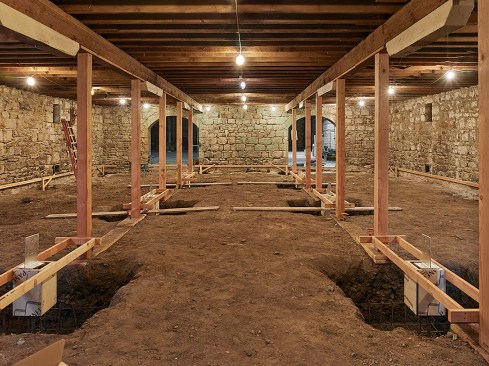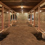 The floor of the first floor was dirt and there was a well in one corner. The traditional means of securing an old well by explosion was not an option. The solution was a fill of rubble covered with a 5-6 foot concrete cap. The footings upon which the original wood columns rested were big boulders. They were carefully excavated and replaced (embedded in) concrete. A new concrete floor incorporates radiant cooling for barrel storage. The original stonework on the lower level was retained and repointed with a gravel mixture from the nearby Napa River. Existing, decorative vents along the bottom of the building were kept. Missing vents were replaced with replications and then all were sealed with glass to boost energy efficiency. Side window portals are original.