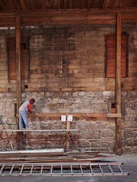When you unravel a building of this size that has sat over time and you want to save whatever you can, deconstruction is a long and dangerous process. OSHA regulations are strict. Lifting and moving century old stone, trusses and 35-40 foot beams, with no clear idea if their degenerated condition will withstand the jarring and flopping in the process is both exhilarating and nerve-wracking.