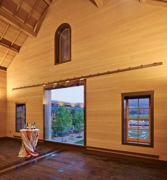 Undaunted, the clients sought to bring the historic treasure back to life. The original plan was to use the Peterson-Bergfeld building to house winery offices but the architects proposed a different use. Its location, across a central courtyard from a planned, new, state-of-the-art winery, presented the opportunity to establish the landmark as the centerpiece of the winemaking campus and anchor the new facility in the heritage of the property. The revised plan would expose it, enhance its visual prominence and transform it into an exquisitely integrated event venue and barrel storage facility.