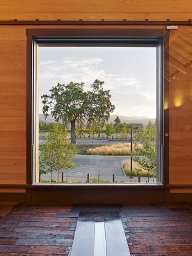 The resulting building pulls all of the elements of the developing winery campus together and grounds them in the sites history. It also opens up the space and its history for enjoyment by more people while assuring that the building continues as an active part of the Napa Valley winemaking tradition for another century or more. The upstairs room, where the fruit came into the historic winery, is now a soaring and open event venue with adjacent restroom. Walls of tongue and groove Douglas fir are warm and evocative. Downstairs, barrel storage is pushed to opposite edges of the room and an oversized harvest table is nestled in the middle to accommodate group experiences.