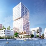 “At Hamburg Innovation Port we envision a very high density to create a vibrant neighbourhood and to make the best use of this fantastic location at the waterside, a former cattle food factory site.” Says MVRDV founding partner Jacob van Rijs. “The density is FAR3.3, comparable to a typical Berlin city block with its courtyards and outhouses, but designed in a way to offer daylight and vistas.”