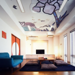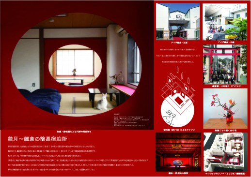 The location of this project is Aiza Kamakura, a one-minute walk from Kamakura Station. The 3rd and 4th floor apartment were converted to inns. because this apartment has not been occupied for three years.Nobody noticed it because it was accessed from the back door.Therefore, We made a web reservation type inn. Recently called the sharing economy. Aiza Kamakura is a commercial facility on the first to third floors. The shopping street in Kamakura is open to the temples such as Kencho-ji and Meigetsu-in.In summer, almost tourists go to coastal areas such as Yuigahama, but many Asian tourists and Europe tourists visit Japan’s temples and shrines. So I created a unique inns that i feel a specify space in kamakura. I visited some temples and shrines. Meigetsu-in Temple is the best temple in Kamakura. Meigetsu-in is located in flowers such as hydrangeas and traditional Japanese houses. This inn was designed with reference to the inside view of Meigetsu-in’s circle. The partition used was a scarlet rug shaped like a circle. I created a beautiful space composition with a red cloth motif called scarlet rug(緋毛氈). On the ceiling of the living room, the artist painted a ceiling painting that expressed the hydrangea, with the image of Meigetsu-in Temple called Hydrangea Temple. Ikebana (Japan flower arrangement) was arranged in the back of the circle partition by a flower artist. I created a space with centrality in the partition of the circle. At the same time as staying at this simple accommodation, The location is a 1-minute walk from Kamakura Station, The inn can also be used as a flower arrangement class or art gallery.