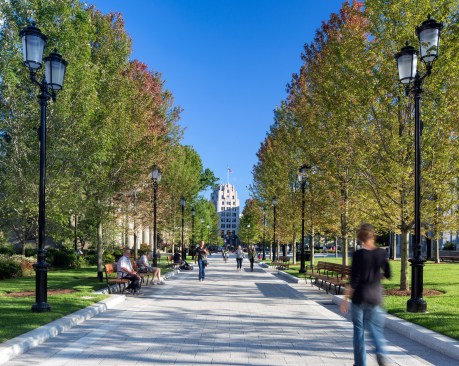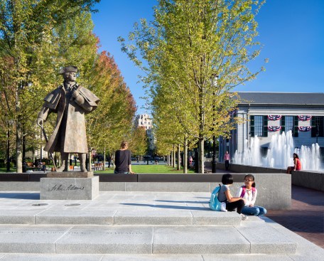 Bringing new life and activity to historic Quincy, Hancock-Adams Common is poised to become a civic focal point for the community. This new activated park and streetscape connects cyclists and pedestrians to the bustling downtown. Contemporary water features and elegant materials establish a celebratory ground that commemorates Quincy’s national renown as the birthplace and home of two American presidents.