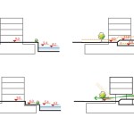 Since the site divided by the river is composed of 12 plots with a multitude of formats, a well-conceived pedestrian circulation system is needed. The design sets back the platform on the first floor to introduce multilevel vertical connection. In order to link the two banks and activate the waterfront, a continuous corridor is set up, forming a coherent and efficient strolling path on the second floor.