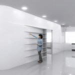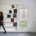 Aware that meeting space is always at a premium, the team at Höweler+Yoon tucked five conference rooms behind undulated walls along the perimeter of the floor. Integrated shelving marks the doorway into each conference room and provides a space to showcase the company’s magazines. Glass doors give vivid hints of the conference rooms’ lime-green walls.