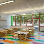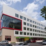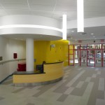 The light, neutral shades of the exterior materials of the building are a fresh contrast to the surrounding institutional 14-story red brick residences. Close collaboration between Ciardullo Associates and the fabricators of the unitized aluminum rain screen system on the upper floors allowed for the rapid enclosure of the building envelop. With off-site fabrication of the panels scheduled concurrently to the erection of the superstructure, major construction activities on the densely residential site were reduced. A progressive two-toned stacked bond brick pattern on the lower level and the bold colors of the curtain-wall frame and entry canopy create a lively streetscape to the newly re-opened 129th Street. Closed-off in the 1950’s to create a “super block” for the housing project, 129th street had become a dead-end. Restoring the fabric of the city grid has re-integrated the isolated development with the surrounding community.