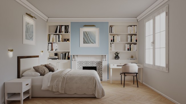 The soft and tender palette of off-white with pastel colourful accent is accompanied by delicate golden touches that emphasize the refined interior.
