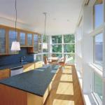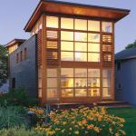 The house’s strong rhythms and geometries serve practical purposes. Glazed walls are layered with cypress louvers, which veil the street facade from sun and traffic. Those on the rear corners add privacy from close neighbors. Ferris treated the sides of the house as a solid, stained cypress box with just a few punched openings. “We wanted to have a house with enough going for it visually at both ends without having to have the sides articulated with fenestration,” he says. The judges pronounced the project “gorgeous,” noting that its form reacts to a great many challenges.