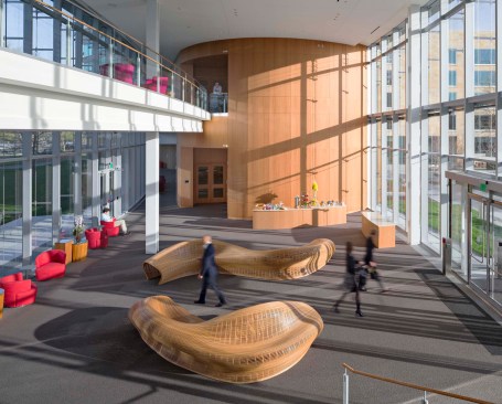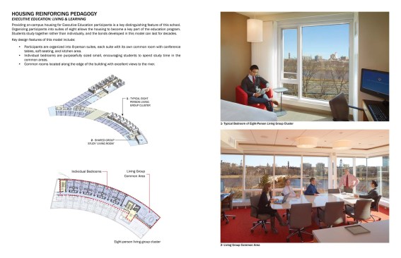 Located on the banks of the Charles River, the arc-shaped building creates a porous edge to the campus and a new sense of openness between the school and the city of Boston. Dedicated to the Executive Education program the building groups students into clusters of eight-person suites, each with a common space for work, collaboration and presentations. The detailing and performance of the exterior facade allows the transparency of the ground floors to expose the public parts of the building.