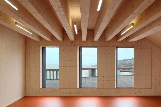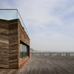 Creative use of timber is at the heart of the transformed Pier design. The new visitor centre is a 100% cross-laminated timber structure, clad in the limited timber decking that survived the 2010 fire. This reclaimed timber was also used to make the furniture on the deck, designed by dRMM and Hastings & Bexhill Wood Recycling Ltd as part of a local employment initiative. The visitor centre has been designed as an adaptable space for indoor events, exhibitions and educational activities, with an elevated belvedere on top. A glass walled, open-air ‘room’ looks out to the vast views over the Pier and beyond toward Europe, then back to the town and coast.