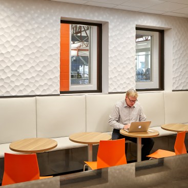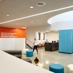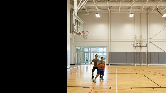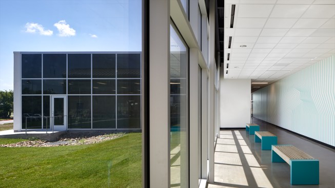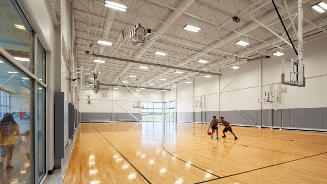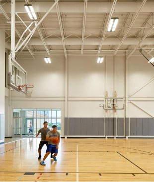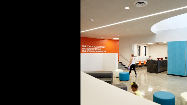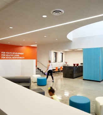 Runa’s renovation of the Hays Community YMCA in Buda, Texas had two components: reimagining the existing 34,000 square foot interior and creating space for new program elements through a 13,000 square foot addition that included a gymnasium and 2 multipurpose rooms. The design concept was integrated by contrast. Runa created a unified campus by fashioning the structures into stark white and linear volumes that deliberately contrast with the existing facility’s ornamental, curved facade. Floor-to-ceiling glass walls open up the spaces to reveal their inner activity while also connecting them visually to the recreational spaces outside. The interior renovation resulted in a much more efficient building flow, optimizing existing areas that were underutilized and creating a new child-watch area, break room and main lobby. Wall graphics and textures inspire movement and activity. Motivational messages compliment the effect.